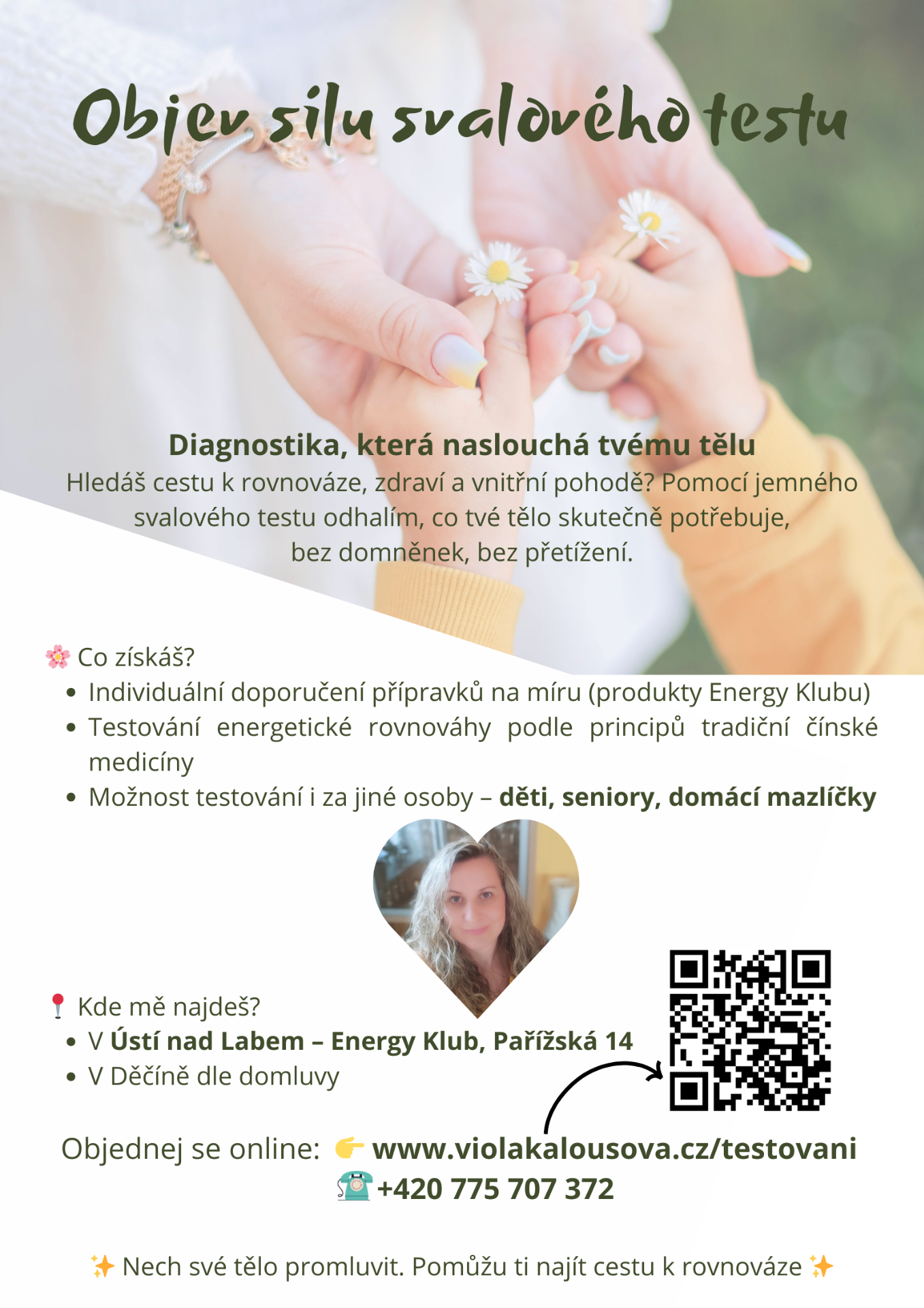 TESTOVÁNÍ PROBÍHÁ v Energy Klubu, Pařížská 14, Ústí n.L. na objedenání po telefonu
